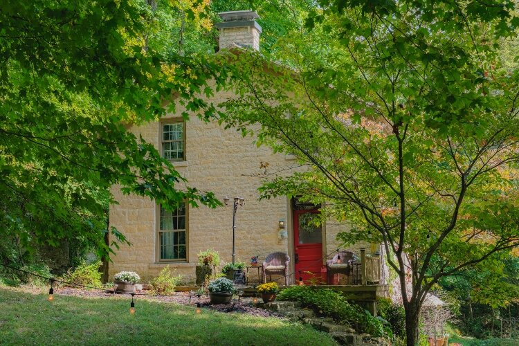 Built in the 1830, the Partington Spring House as a three-bedroom stone home “nestled” within a 6-acre piece of property that features natural landscape features, including limestone cliffs and a spring.