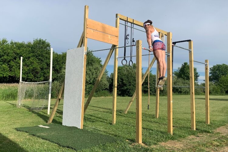 Although her regular gym has reopened, she continues to use her outdoor gym, too. Before, she would take a class at Champion City CrossFit and stick around afterward for extra training. Now she can either stay and practice or go home for additional training.