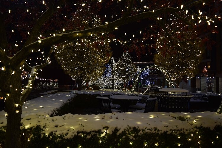 The lights visitors will see this year are part of Phase 1 of a three-phase lighting project the committee plans to expand on in the next couple years, Schutte says. Phase 1 included the esplanade in front of COhatch and some lighting on City Hall Plaza. The lights were lit Nov. 29, and the lights and music will be on every night from 5 to 9 p.m. through New Year.
