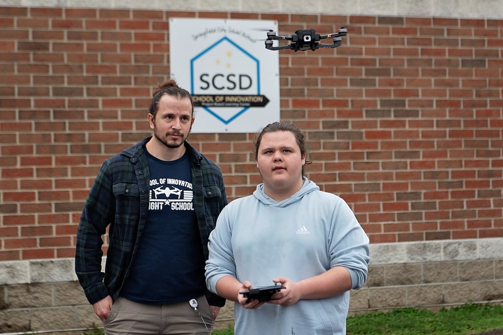 The School of Innovation added unmanned aerial systems courses during the 2022-2023 school year. In addition to learning the mechanics of how to fly a drone, students in those courses also learn the physics behind aerodynamics, how air density affects flight, how to read meteorology reports, the communications pilots use, signs at airports, airspace maps and how to develop a mission plan before flying.