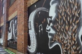 Local artist, Sush Kreates, completes a mural honoring Springfield jazz musician Johnny Lytle at Mother Stewart's Brewing Company.