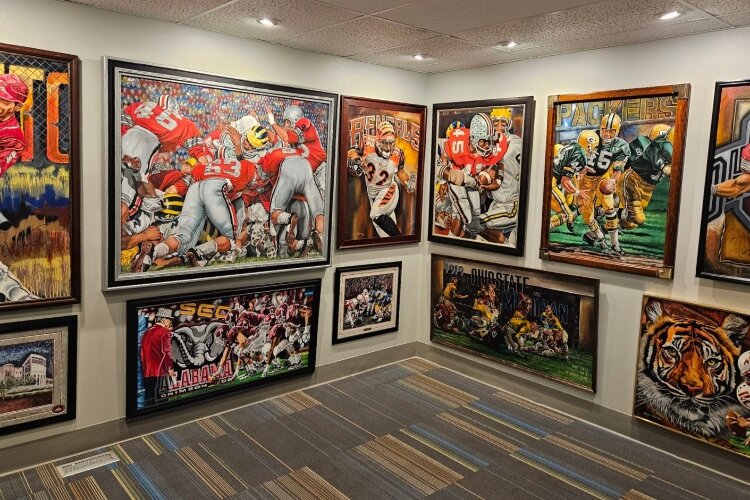 That and several more paintings related to Ohio State were licensed, and he became more serious about his artwork. Most of the art on display at the gallery was created since 2002, but he also included a few of his earlier pieces.