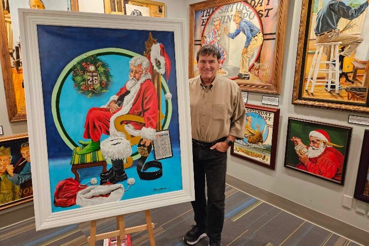 Gary Blevins recreates Norman Rockwell art with John Fleeger serving as the featured Santa in the updated piece.