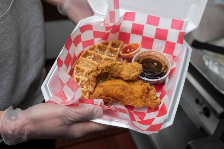 Selling the unique combination of chicken and the waffles that contain Fruity Pebbles, Crossley carted his product around to various spots in Springfield before taking up residence in his first brick and mortar location in the lower level of the Bushnell Building on Fountain Avenue.