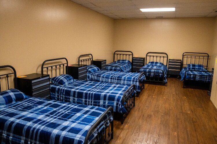 Before COVID-19 restrictions, the Caring Kitchen could provide temporary living arrangements for 17 people in its shelter space, with the beds are split into a men’s dorm and a women’s dorm, Cohn says. Currently – with some creative maneuvering and beds spread out at night into rooms not usually used for sleeping – the facility is still able to accommodate 16.