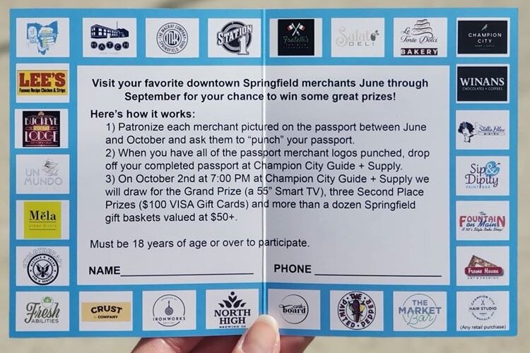 Customers can pick up a passport at any of the participating merchants. Each time one of the businesses is patronized, its logo on the passport will receive a hole punch. After all of the logos are punched, the completed passport can be dropped off at Champion City Guide & Supply, 36C N. Fountain Ave., for a chance to win prizes. Customers can complete as many passports as they wish.