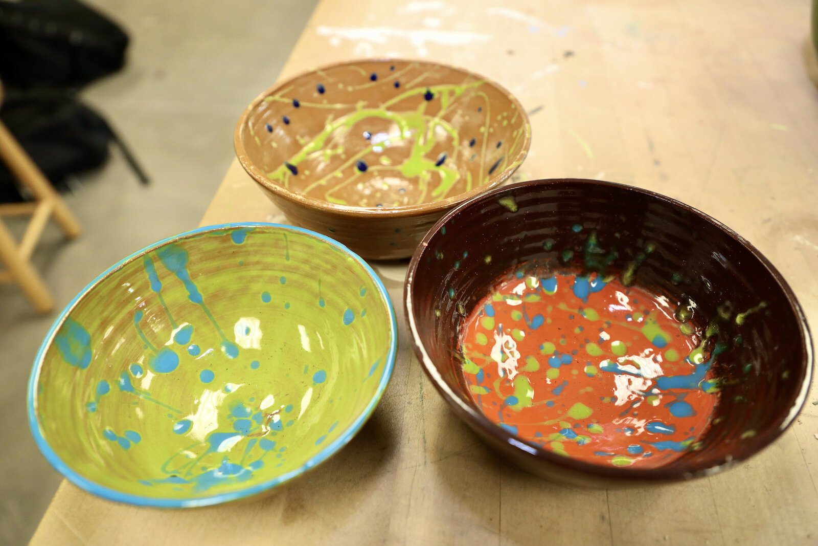 Bowls created by Springfield High School art students and Wittenberg ceramic students, staff, faculty, and other community members were auctioned off to raise funds to feed the food insecure.