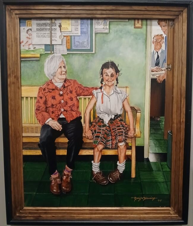 She was. Blevins asked his girlfriend to come along for the trip to the Rockwell museum, and to pose next to Whalen in the same studio in which she posed for Norman Rockwell way back when. The result is the painting shown here. Mary Whalen at age 9, sitting beside Mary Whalen, age 86.