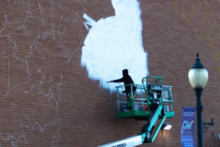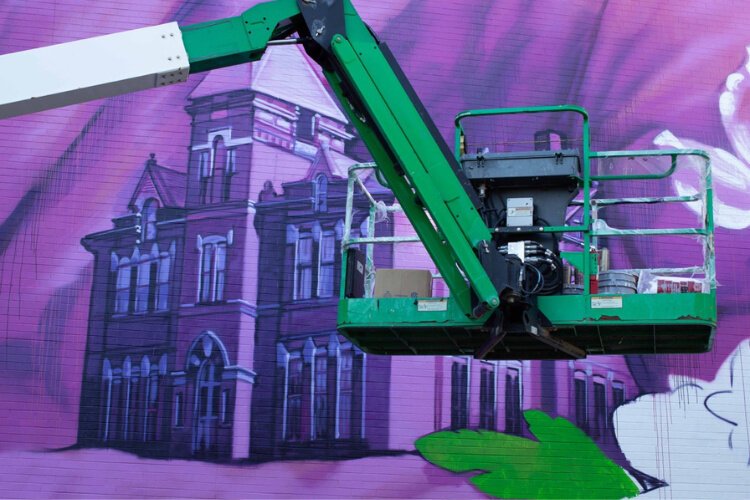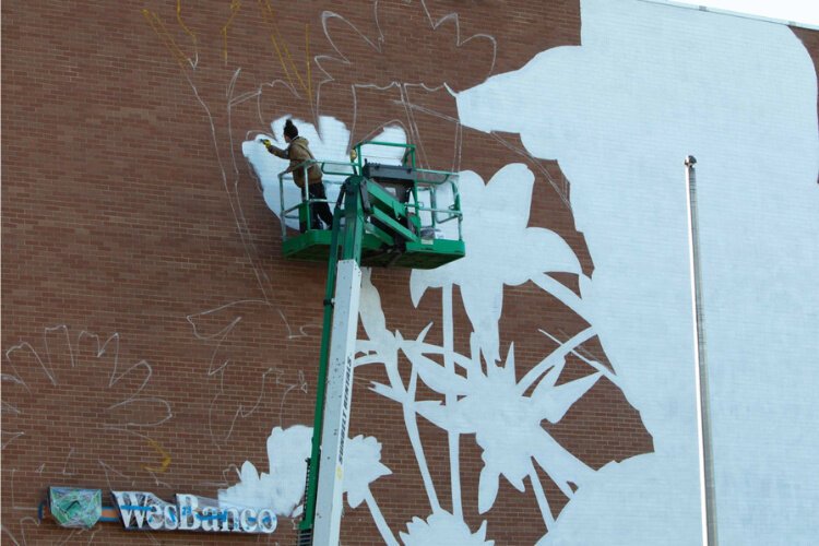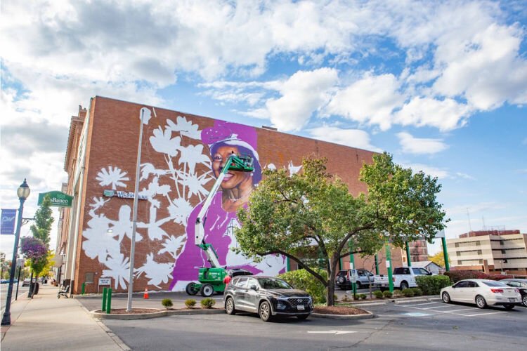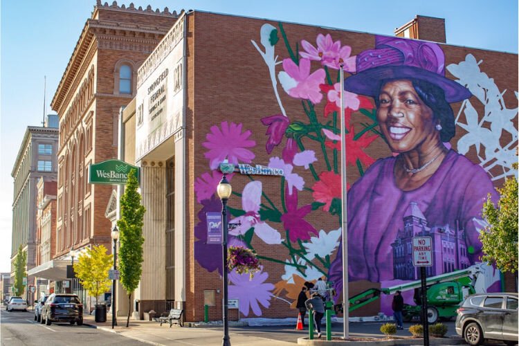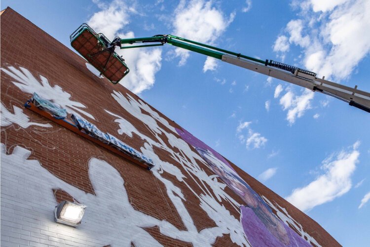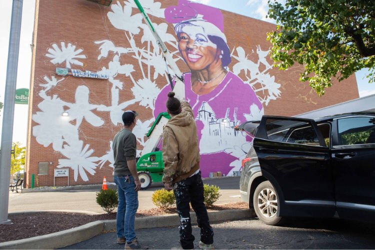 Check out the progression of the paiting of the new Hattie Moseley mural on the side of the WesBanco building at 28 E. Main St. in Downtown Springfiled.Â