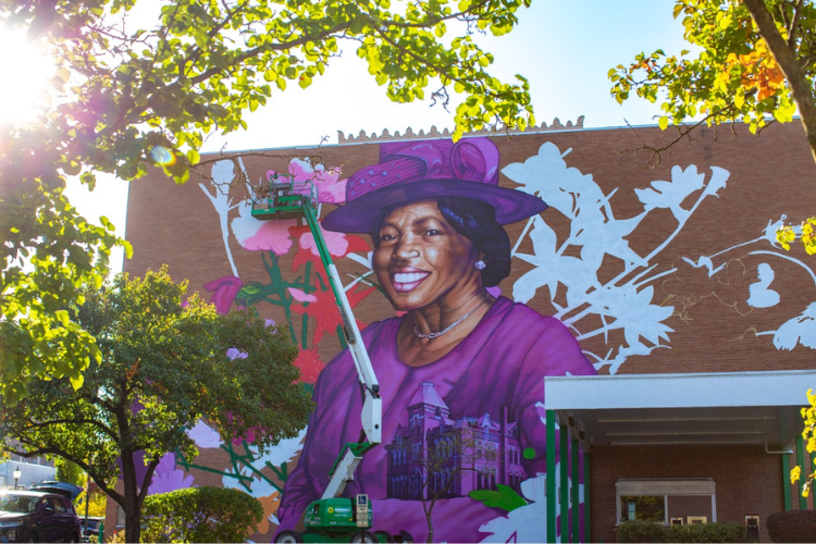Through her many roles, Moseley took a no-nonsense approach that allowed her to secure jobs and improve the livelihood of many people. The mural provided the Public Art Committee the opportunity to connect with Moseley’s family and involve them in the creation of the piece.