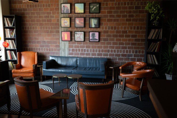“My father always boasted Springfield’s affiliation with the greats, and those who have spent time playing around town. It’s special to have some with such prowess spend their formative years here,” Hatfield goes on to say. “So we have tried to do the same and celebrate some of them by incorporating them into the atmosphere at Hi Hat. Including Ada Lee, Griffin House, and John Legend. But someone particularly important to us would be jazz drummer John Dessinger. Born and raised in Springfield, he played in the area for practically eight decades. We were fortunate enough to inherit his drum kit, which we have showcased above the door. Not to mention — of the hundreds of records we have on display, 90 percent were his.”