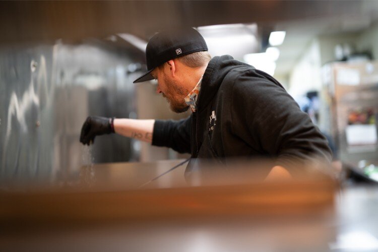 Chef Clayton James works on the lunch menu at Hi Hat.