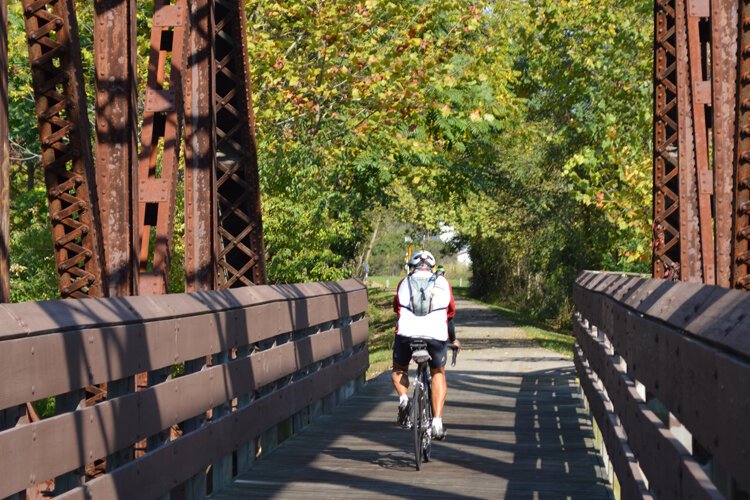 “I always meet people on the trails that bring their bikes to the area. They stay at an Airbnb for two or three days because there are so many trails here,” says Kim Fish, an avid cyclist and member of two Springfield bicycle groups, the Old Spokes Bike Club and The Road Fish.