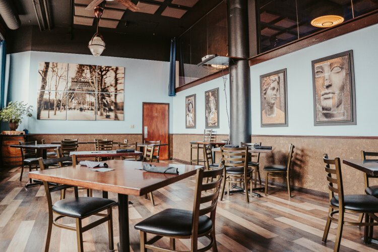 The restaurant can seat up to about 90 patrons, not including the patio and a 50-person event space. Aside from the food, the bistro’s artwork, lighting and colors set the restaurant’s tone.