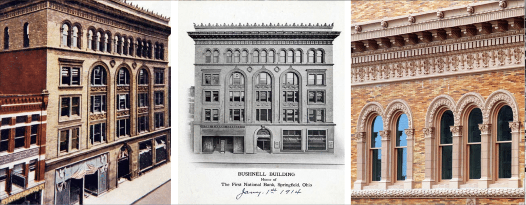 Originally commissioned by Ohio Governor and Springfield business leader Asa Bushnell in 1893, the Bushnell Building was completed over multiple phases between 1903 and 1939. It is famous for serving as the law office of Harry Toulmin, a nationally recognized patent attorney who was responsible for filing five patents for aircraft controls for the Wright Brothers, and is best known locally for housing Wren’s Department Store, which operated from 1939 until 1987.