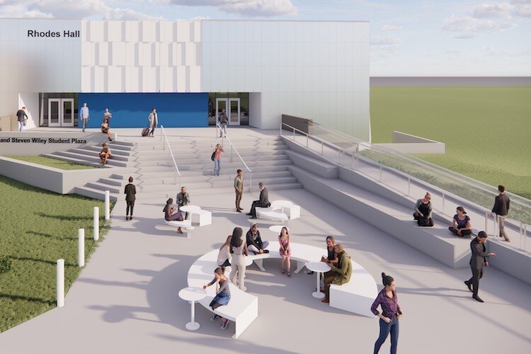 Why it’s important: Nina Wiley says the plaza fosters a greater sense of belonging and social connections for students, thus positively impacting student persistence and retention. “We are proud to have an outside space on campus where students can gather, learn, and connect with one another,” says Wiley. “The design of the plaza lends itself to a welcoming environment, perfect for student life events and programming.”
