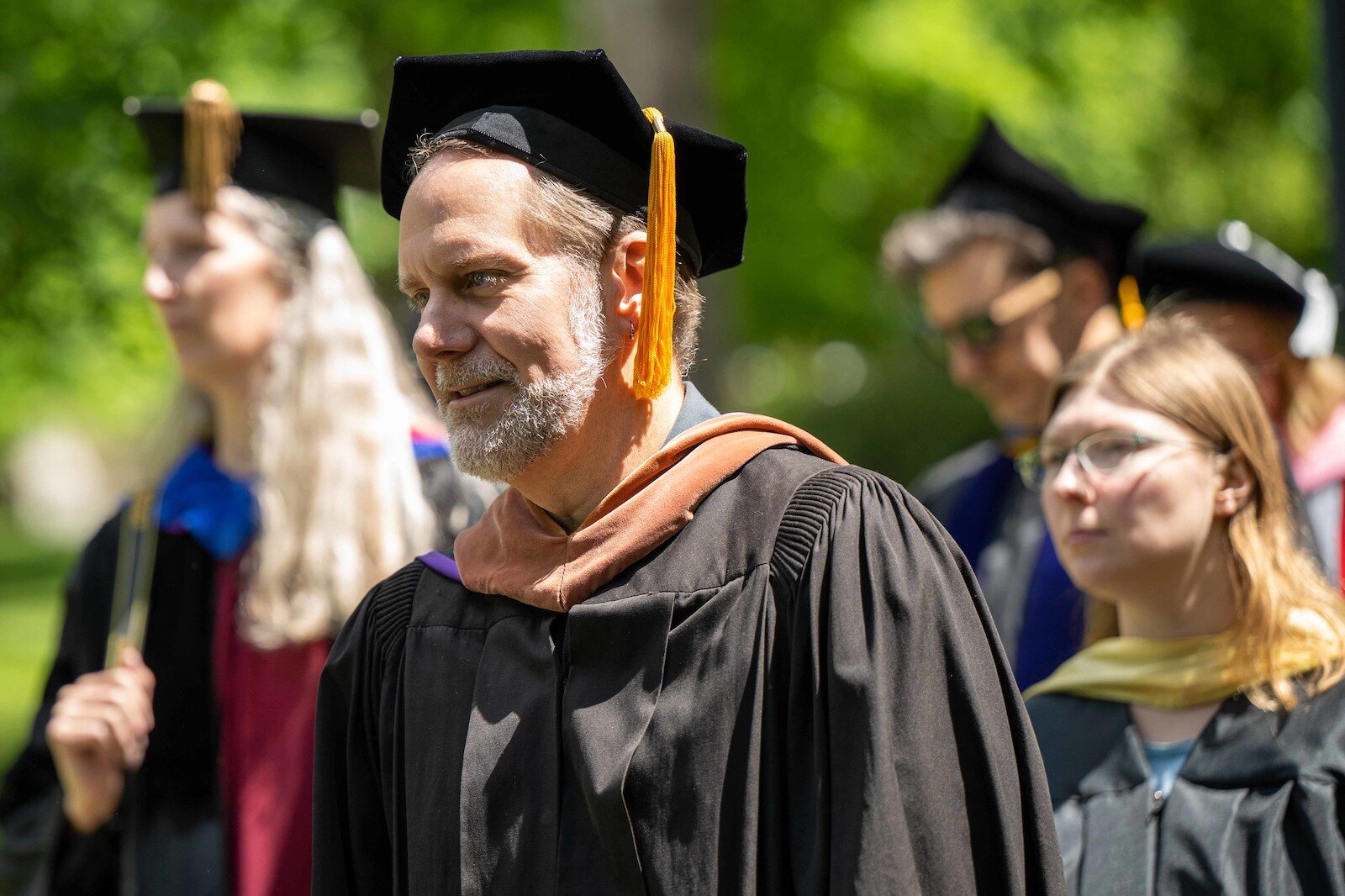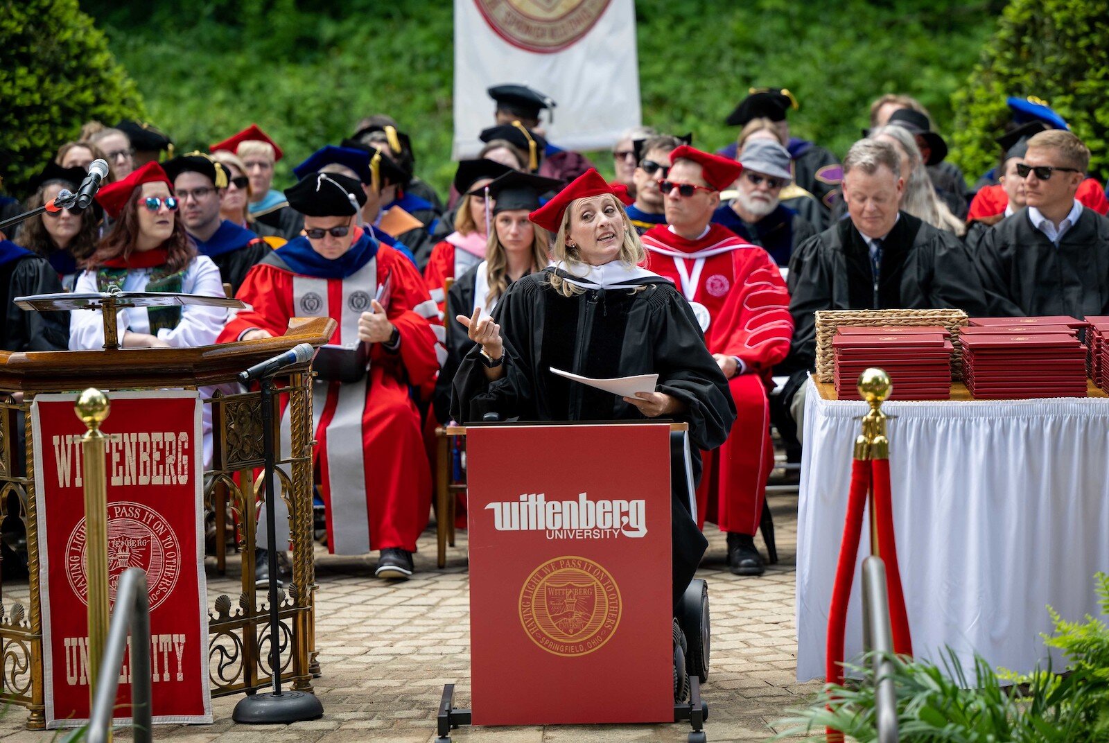 Words to the graduates: “It seems so far in the past, but also only yesterday, that most of our graduates started their time at Wittenberg in masks, in classrooms that were configured to facilitate social distancing, and without getting together in groups. They had missed high school proms and graduations as the early days of the COVID-19 pandemic unfolded. With more than a few bumps along the way, slowly but surely, things returned to something like they had been before. And this group, the Wittenberg University Class of 2024, helped to shape our new normal. In some ways, because of the disruption, the Class of 2024 had an outsized impact on our community. Now, we get to celebrate them. Celebrate graduation, an important milestone, and celebrate a new beginning, the commencement of life after Wittenberg.”