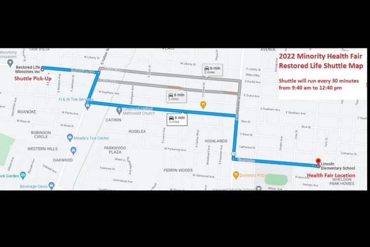 New this year is a shuttle service to the event running from 9:40 a.m. to 12:40 p.m. The shuttles will be available at Perrin Woods Elementary School (431 West John Street), Grayhill Apartments (220 Montgomery Avenue) and Restored Life Ministries (1117 Innisfallen Avenue) about every 20 minutes during the event.